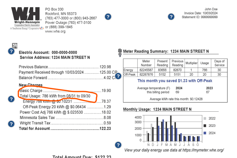 Calculating emissions from your home is straightforward for electricity if you are a home owner or someone that pays your own electric utility bill. Most utilities have an online portal where you can access all the past utility bills which list the kWh per month.