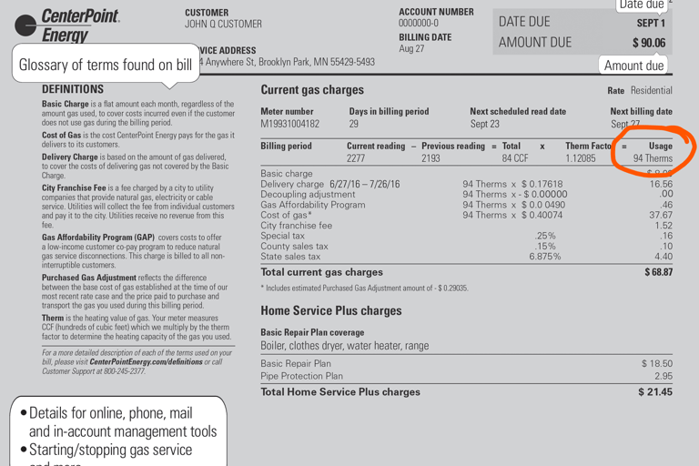 Example: My household uses 370 therms per year and I live with my wife and no kids.